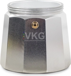 Se compune din trei părți: rezervorul inferior de apă cu supapă de siguranță sub presiune, pâlnia cu sită pentru cafea măcinată și rezervorul superior pentru cafeaua gata făcută. Acest design robust asigură o preparare sigură și simplă a cafelei.