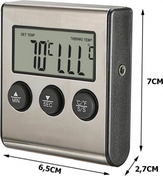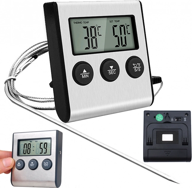 Un alarmă integrată vă anunță când temperatura dorită a fost atinsă, în timp ce cronometrul ajută la urmărirea timpului de gătit. Termometrul oferă trei posibilități de fixare - agățat, magnetic și cu suport.