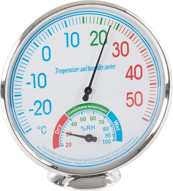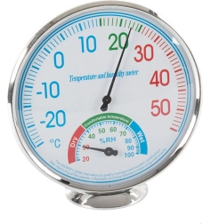 Acest termometru și higrometru analogic excelează în măsurarea precisă a temperaturii și umidității aerului, esențial pentru a asigura condiții de confort în interior. Cu cadrane clare, poate afișa temperatura și umiditatea cu precizie ridicată.