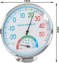 Termometru și higrometru analogic este ideal pentru măsurarea temperaturii și umidității în interior și exterior. Utilizare ușoară în locuințe, depozite, biblioteci și alte locuri unde este importantă controlul climatului.