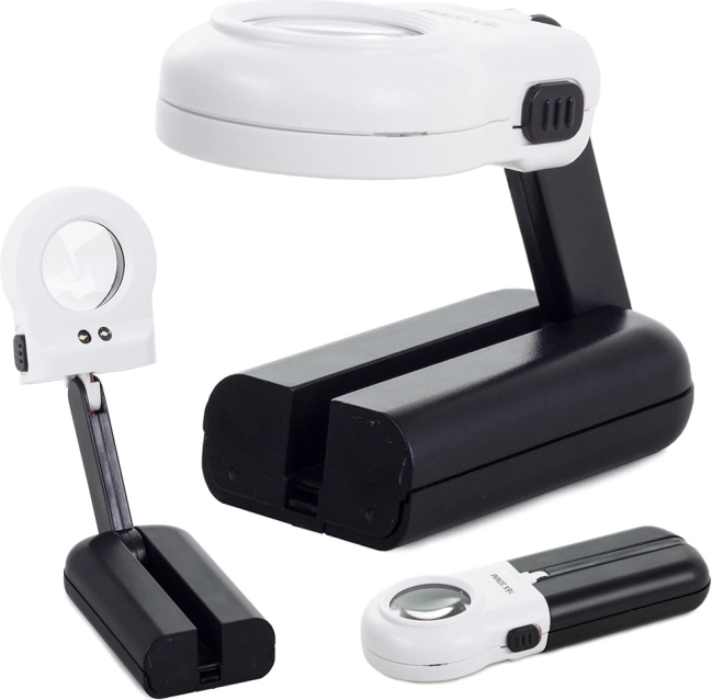 Potrivită pentru citirea textului, cusut, examinarea timbrelor și monedelor, verificarea marcajelor de bijuterii și service electronic. Întrerupătorul practic și înlocuirea ușoară a bateriilor sporesc confortul utilizării. Dimensiunile compacte facilitează depozitarea și transportul.