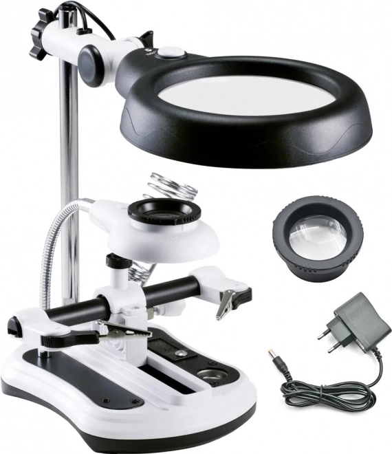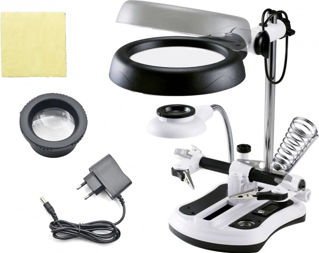 - Lupă cu a treia mână, lentilă de rezervă, adaptor de alimentare, lavetă pentru sticlă, ambalaj original
