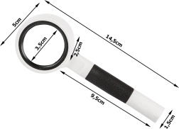Lupă de mână compactă cu diametrul lentilei de 35 mm și mărire de aproximativ 16x pentru citire precisă și lucru de detaliu. Construcție ușoară din plastic rezistent, lentilă din sticlă pentru imagine clară și mâner ergonomic antiderapant pentru o prindere confortabilă. Ideală pentru bijuterii, timbre, monede și citirea zilnică a textului mărunt.