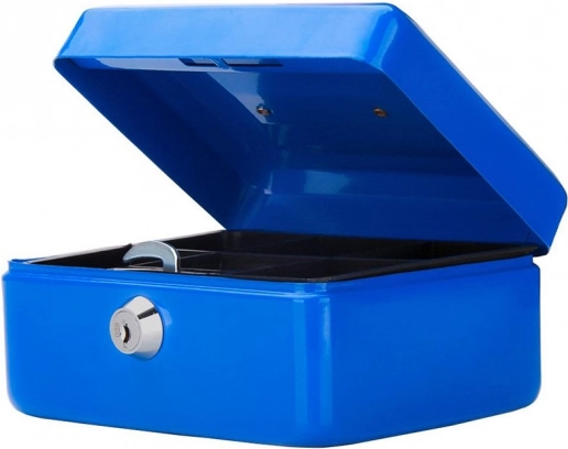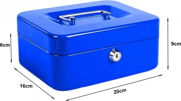 Casetă de bani metalică practică pentru depozitarea în siguranță a numerarului, monedelor și documentelor mici. Oferă încuietoare cu cheie (în pachet 2 chei), tavă detașabilă cu 5 compartimente, tablă de oțel solidă și dimensiuni compacte 20 × 16 × 9 cm cu mâner încastrat pentru transport și stivuire ușoare.