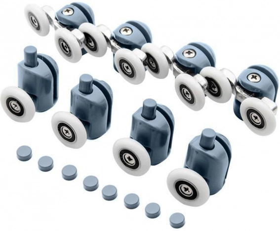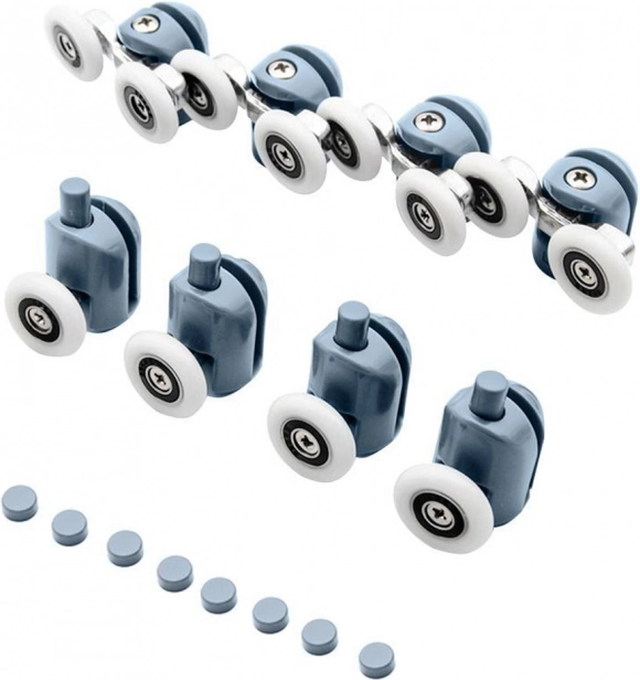 Redați fluiditatea și funcționarea silențioasă a cabinei de duș cu setul practic de role. Setul include patru role superioare duble și patru role inferioare simple, cu rulmenți de calitate, care asigură glisarea lină și stabilă a ușilor. Datorită combinației de plastic și oțel rezistent la coroziune, rulourile sunt rezistente la umiditate și utilizare îndelungată.