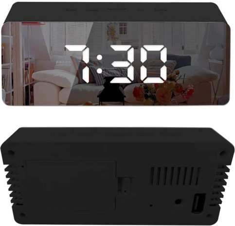 Ceasul deșteptător LED stilat îmbină funcțiile practice cu un aspect modern. Suprafața oglindă a ecranului permite o verificare rapidă a aspectului, luminozitatea poate fi ajustată astfel încât să nu deranjeze noaptea și să fie perfect lizibilă ziua. Ecranul LCD clar afișează ora în format 12/24 h, data și temperatura în °C sau °F.