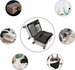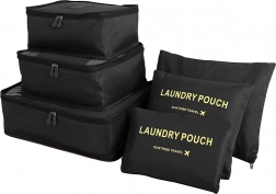 Set practic de 6 organizatoare de călătorie pentru împachetare ordonată în valiză. Combinația dintre cubiuri din plasă și săculeți cu închidere permite separarea ușoară a hainelor, lenjeriei, încălțămintei și cosmeticelor. Material ușor, fermoare duble, plasă de ventilație și mânere pentru utilizare comodă acasă și în călătorii.
