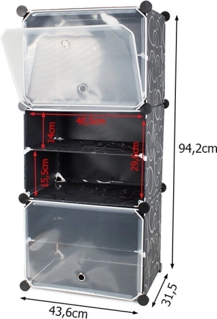 Cu acest raft modular, puteți avea întotdeauna pantofii și accesoriile ordonate. Dulapul este format din trei segmente, este ușor și în același timp stabil. Construcția sa modulară permite o montare ușoară și flexibilitate în aranjare conform nevoilor dumneavoastră. Cadrele metalice se conectează simplu cu ajutorul elementelor de îmbinare din ABS.