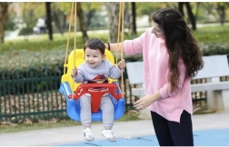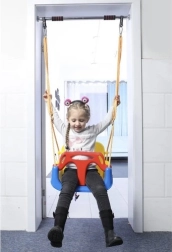 Spătar înalt, bară în T, curele reglabile și suprafață antiderapantă mențin copilul stabil și previn alunecarea în timpul legănării.