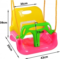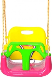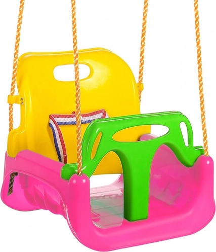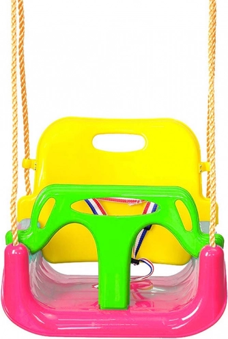 Acest leagăn universal pentru copii 3 în 1 este conceput pentru utilizare pe termen lung – pur și simplu adăugați sau îndepărtați piese și adaptați-l vârstei copilului. Spătarul înalt, bara frontală în T/bariera și hamul de siguranță asigură stabilitate și siguranță la legănat, în timp ce plasticul rezistent și frânghiile solide fac față utilizării zilnice și condițiilor exterioare.