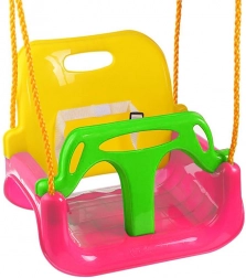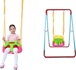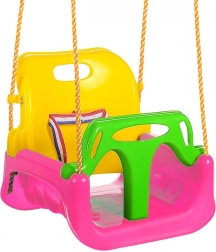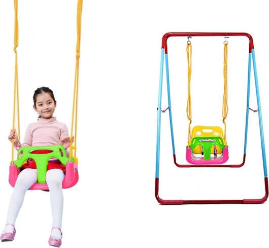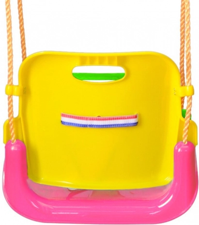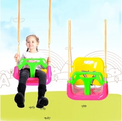 Frânghii stabile, prinderi solide și ham de siguranță oferă încredere la fiecare balans. Plasticul rezistent face față solicitărilor și intemperiilor.