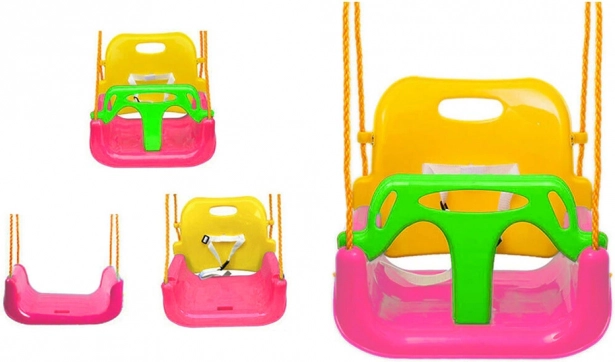 Leagănul colorat pentru copii 3 în 1 crește odată cu copilul tău – de la scaunul sigur pentru toddleri până la leagănul clasic pentru copiii mai mari. Datorită construcției modulare, înălțimii reglabile a frânghiilor și centurii de siguranță, oferă siguranță maximă, confort și durată de viață îndelungată pentru utilizare în grădină, pe terasă sau în interior.