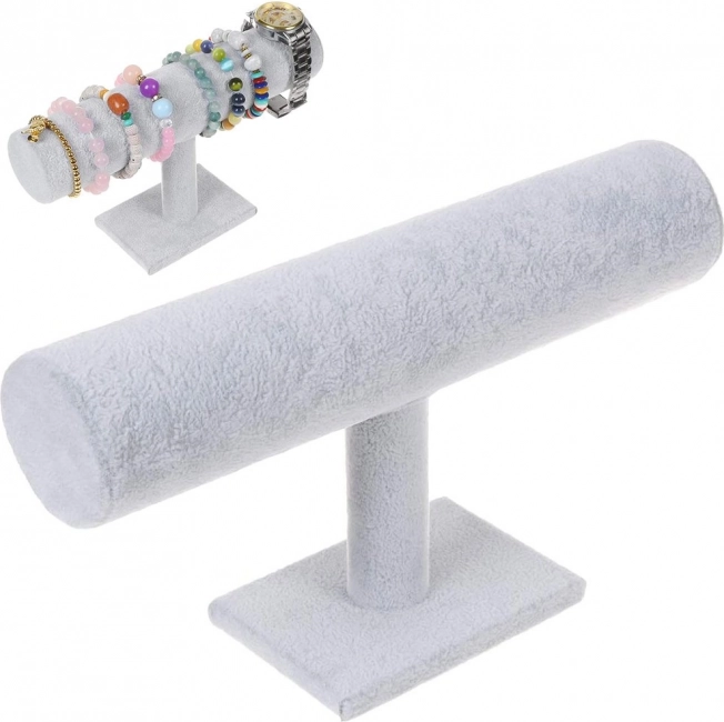Suport elegant pentru bijuterii, cu suprafață moale din catifea, păstrează ceasurile, brățările și alte accesorii organizate într-un singur loc. Datorită cilindrului lat încape mai multe piese, are construcție stabilă, este ușor, se curăță ușor și este ideal pentru dormitor, măsuța de toaletă, vitrine și prezentări.