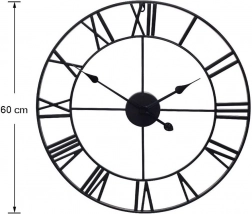 Ceas de perete stilat, cu design retro vintage, având efect 3D și cifre romane, completează perfect atât interioarele moderne, cât și pe cele clasice. Are suprafață mată fără reflexii, mecanism silențios și fiabil și, datorită diametrului mare de 60 cm, este excelent lizibil chiar și de la distanță. Montajul ușor este asigurat de cârligul integrat.
