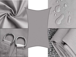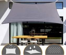 Datorită inelelor metalice și șnururilor de montaj incluse, o întindeți ușor la unghiul dorit – în grădină, pe terasă, balcon, în camping sau la evenimente în aer liber. Suprafața generoasă oferă umbrire eficientă și protecție împotriva vântului și umidității.