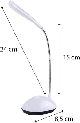 Lampa de birou LED este echipată cu 4 diode LED puternice, care oferă o lumină intensă ideală pentru citit sau muncă. Acest produs este excelent ca accesoriu pentru reducerea tensiunii ochilor în fața ecranului computerului. Datorită finisajului său alb, neted, este ușor de curățat.