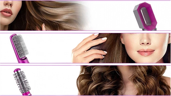 - Perie cu aer cald 3‑în‑1 (uscător, perie de netezire, perie rotundă)