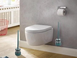 Această perie se remarcă prin designul său modern, potrivit pentru orice baie. Poate fi agățată sau așezată.