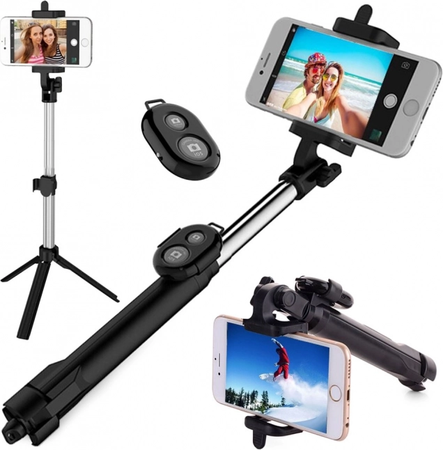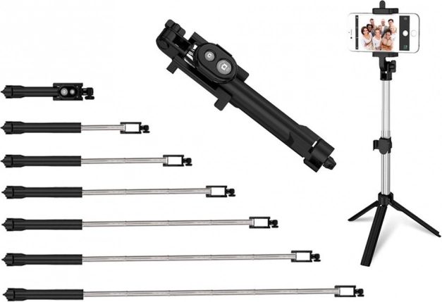 Această tijă se extinde ca un trepied, ceea ce vă permite să faceți fotografii de grup extraordinare de la o distanță mai mare. Cu cele trei picioare extensibile, obțineți o stabilitate maximă la fotografiere. În plus, puteți controla declanșatorul prin telecomandă prin Bluetooth, ceea ce înseamnă că nu trebuie să apăsați o mulțime de butoane pe telefon.