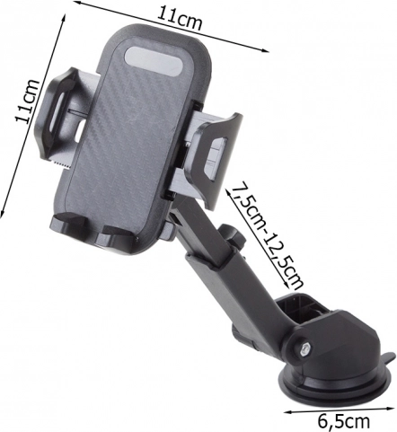 Acest suport reglabil pentru parbriz este conceput pentru utilizarea sigură și comodă a telefonului sau GPS-ului în timpul condusului. Ventuza puternică, cu sistem de blocare, asigură aderență de încredere pe parbriz, în timp ce căptușelile moi ale brațelor absorb vibrațiile și protejează dispozitivul împotriva zgârieturilor.