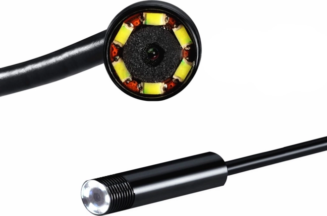 În jurul lentilei sunt integrate 6 LED-uri puternice care luminează zonele greu accesibile. Veți vedea detalii chiar și în întuneric total sau în țevi.