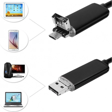 Compatibilitatea cu Android (OTG) și Windows asigură utilizarea facilă pe telefon, tabletă și computer. Doi conectori (USB și microUSB) și interfața USB 2.0/OTG ușurează conectarea. Pachetul include capete practice: magnet pentru extragerea obiectelor metalice, cârlig și oglindă pentru inspecție sub un unghi.