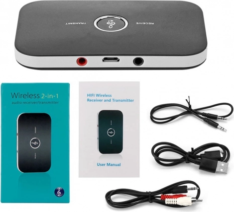 - Adaptor Bluetooth 2 în 1, cablu AUX, cablu RCA, cablu Micro USB, ambalaj original