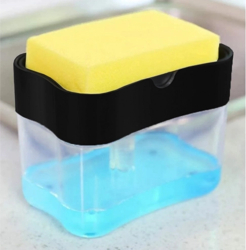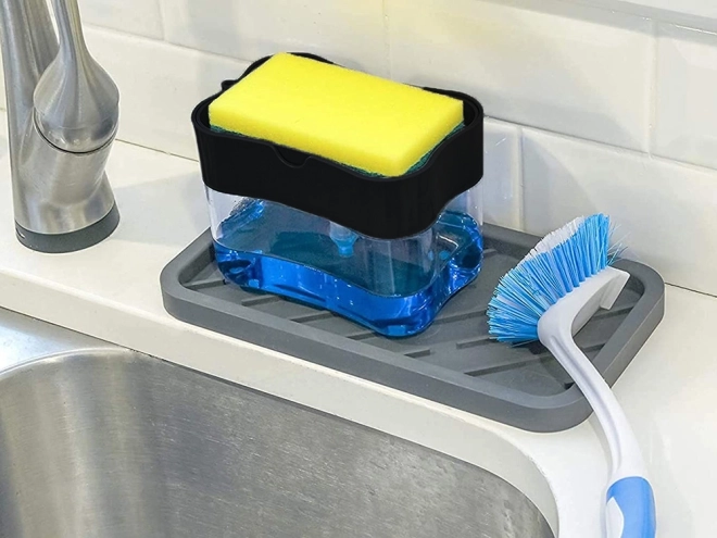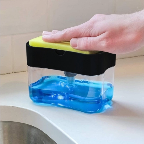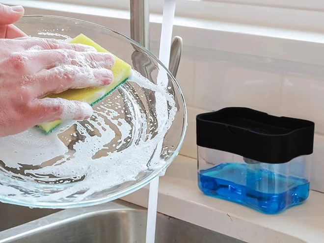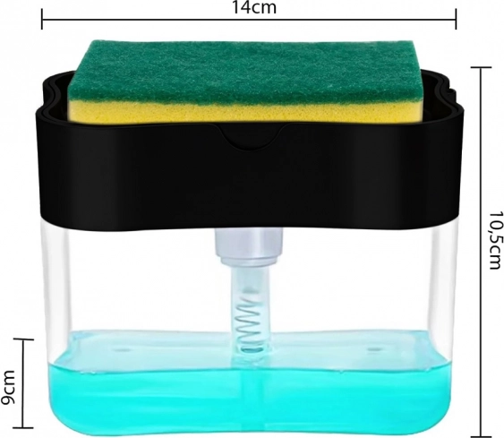 Mențineți bucătăria și baia fără dezordine datorită unui dozator inteligent, care îmbină rezervorul pentru săpun lichid sau detergent cu un suport practic pentru burete. Printr-o singură apăsare a buretelui obțineți exact cât produs aveți nevoie – fără risipă și fără picături în jurul chiuvetei.