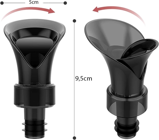 Forma tip pâlnie dirijează fluxul vinului și împiedică scurgerea pe gâtul sticlei. Serviți profesionist și fără mizerie.