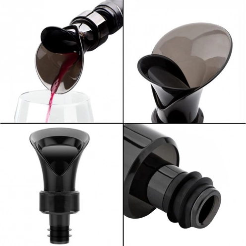 Execuția de înaltă calitate din plastic rezistent și cauciuc este potrivită pentru majoritatea sticlelor cu diametrul gâtului de 20–24 mm. Designul minimalist negru se potrivește în orice locuință sau bar și ușurează servirea cu un rezultat profesionist.