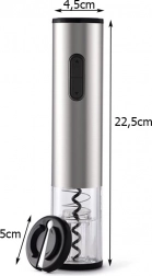 Deschizătorul este alimentat de 4 baterii AA, oferind libertate fără cabluri. În pachet găsești și un tăietor de folie pentru îndepărtarea ușoară a ambalajului din aluminiu sau plastic de pe gâtul sticlei.