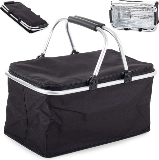 Coș termic pliabil, ușor, cu termofoile izolatoare, fermoar și cadru din aluminiu. Păstrează mâncarea și băuturile la temperatură. Ideal pentru picnic, plajă și cumpărături.