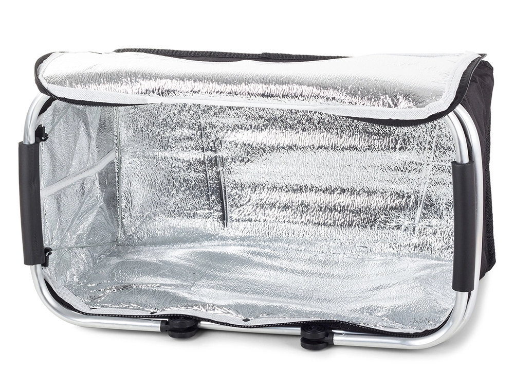 Coș termic practic pentru picnicuri, plajă și cumpărături. Datorită stratului izolator din termofoile menține alimentele și băuturile mult timp la temperatura dorită. Este ușor, pliabil și are cadru din aluminiu cu mânere antiderapante și închidere cu fermoar.