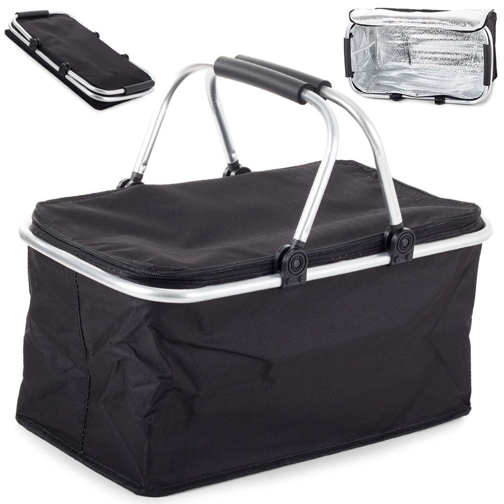 Coș de picnic termic cu izolație și mânere pliabile – negru