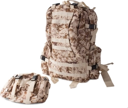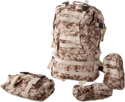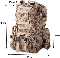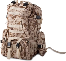 Pregătiți-vă pentru orice expediție fără griji privind vremea cu un rucsac tactic impermeabil. Acest rucsac oferă un compartiment principal mare cu un alt buzunar și buzunare din plasă pentru o mai bună organizare. Două genți laterale pot fi ușor îndepărtate, în timp ce o borsetă mai mare poate fi utilizată ca o geantă separată. Rucsacul folosește sistemul MOLLE pentru a adăuga buzunare și module suplimentare și este echipat cu curele pentru piept și talie pentru confort și stabilitate maximă.