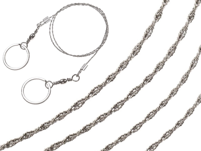 Fierăstrăul practic cu sârmă este o componentă esențială a oricărei truse de survival, EDC și camping. Cablul împletit din inox, cu mii de dinți fini, asigură tăiere rapidă și eficientă la o greutate minimă. Inelele metalice pot fi ținute direct sau li se pot atașa bețe de lemn pentru o utilizare și mai confortabilă.