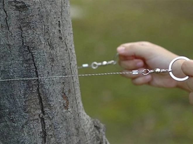 Fierăstrăul cu sârmă cântărește doar câteva zeci de grame și încape în orice rucsac sau trusă EDC. Partener ideal pentru trasee și camping.
