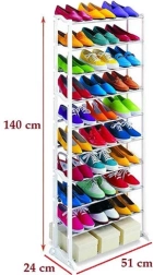 Suportul este compus din 3 segmente și are număr ajustabil de niveluri (1–10), astfel încât îl poți asambla exact după spațiu și cantitatea de încălțăminte. Demontat, ocupă minimum de loc, fiind ideal chiar și pentru holuri mai mici.