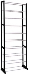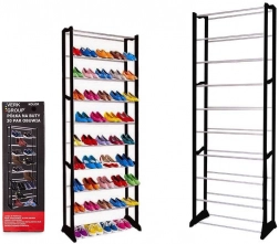 Acest raft pentru pantofi pe mai multe niveluri se remarcă prin asamblare ușoară datorită construcției din stâlpi de plastic și bare metalice. Construcția sa modulară practică permite adăugarea sau îndepărtarea nivelurilor după necesități.
