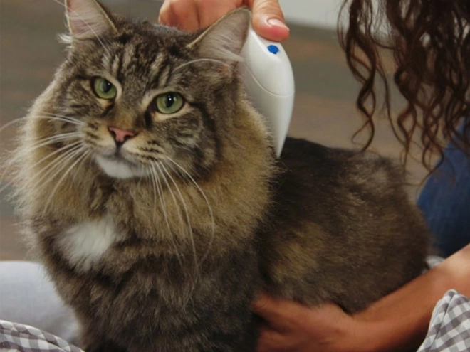 Pieptenele folosește impulsuri electrice blânde care neutralizează eficient puricii, fără ca animalul să simtă ceva.