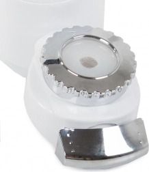 Combinația elegantă de plastic alb, elemente cromate și afișaj LCD transparent nu doar că arată bine, dar facilitează și controlul temperaturii.