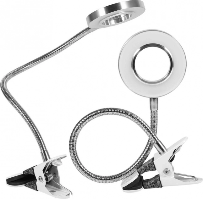 Lampa este echipată cu alimentare USB cu un întrerupător pe cablu și o clemă robustă care o fixează în siguranță pe diverse suprafețe fără a le zgâria.
