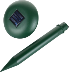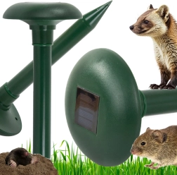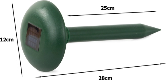 Protecție ecologică fără chimicale – dispozitivul acustic-vibrant alungă dăunătorii subterani cu ajutorul frecvențelor variabile de 400–10000 Hz. Datorită alimentării solare este complet fără cabluri și fără întreținere, potrivit pentru grădini, peluze, straturi și livezi.