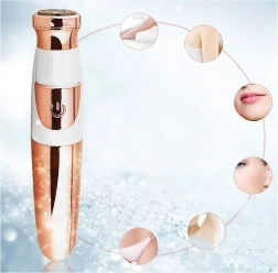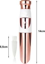 Cu epilatorul nostru, puteți îndepărta cu ușurință și fără durere firele de păr în exces de pe față și corp. Datorită designului său compact și discret este ideal pentru poșetă sau trusa de cosmetice. Alimentarea cu o baterie AA garantează o durată lungă de utilizare.
