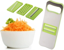 Mânerul ergonomic asigură o utilizare confortabilă, iar toate lamele sunt păstrate în siguranță în carcasa răzătoarei.