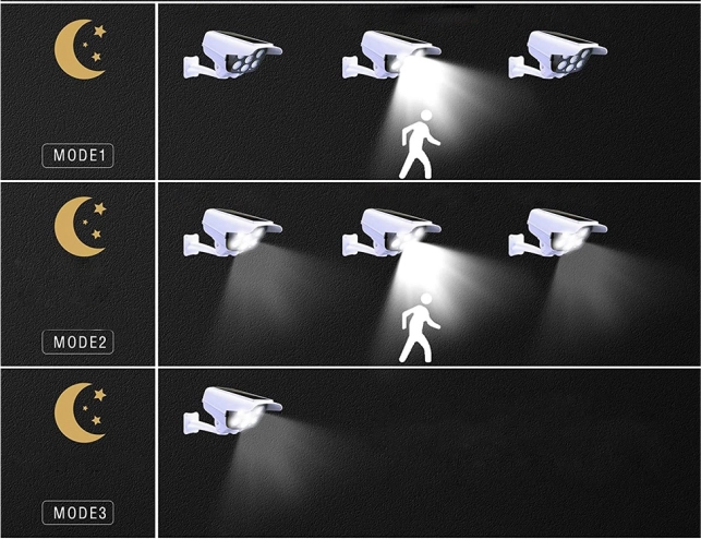 Disponibile trei moduri: iluminare completă la detectarea mișcării, modul eco și iluminare continuă, oferind flexibilitate în funcție de nevoile dvs.