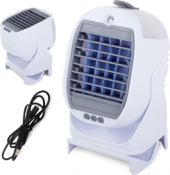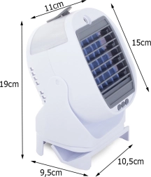 Tehnologia unică hydro-cooling utilizează filtre moderne care transformă aerul fierbinte în aer plăcut răcoros și umed. Datorită bateriei reîncărcabile încorporate și alimentării USB, acest aparat este portabil și ușor de utilizat oriunde poate fi conectat la un computer sau folosit fără fir.