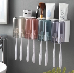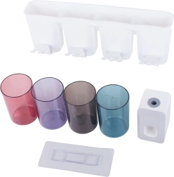 Aduceți ordine în baie cu un organizator inteligent care combină suport pentru periuțe, dozator de pastă de dinți și compartimente de depozitare pentru nevoile zilnice. Setul include 4 pahare din plastic (300 ml), potrivite pentru întreaga familie. Instalarea este rapidă și curată – este suficient să îl fixați pe perete cu ventuza puternică, fără găurire.