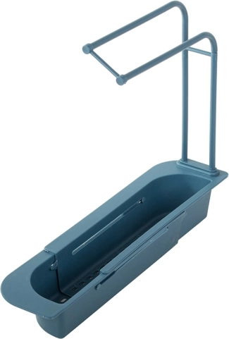 Păstrați ordinea în bucătărie cu un organizator practic pentru bureți, cârpe și alte necesități de bucătărie. Organizatorul oferă instalare ușoară datorită lățimii sale reglabilă, ceea ce îl face ideal pentru majoritatea chiuvetelor.