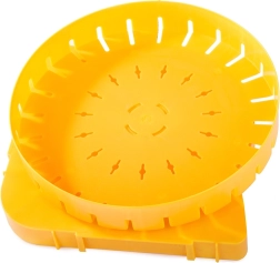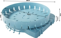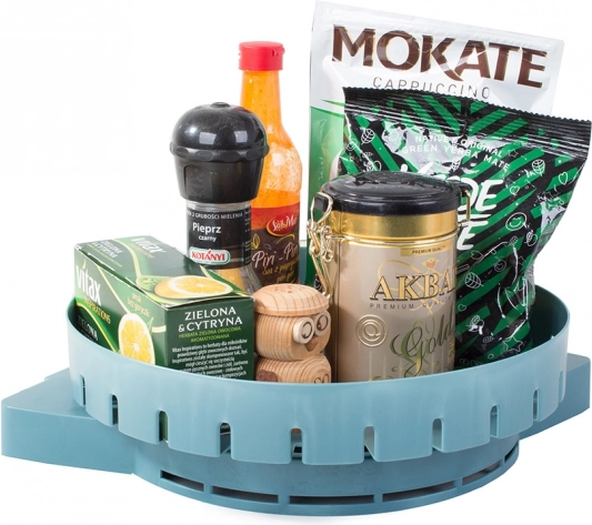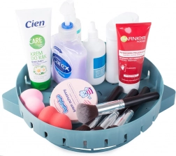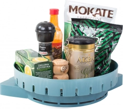 Cu dimensiuni funcționale de 26 cm în diametru și înălțime totală de 7 cm, acest organizator oferă o soluție modernă pentru nevoile de depozitare, disponibil în două culori: albastru și galben.